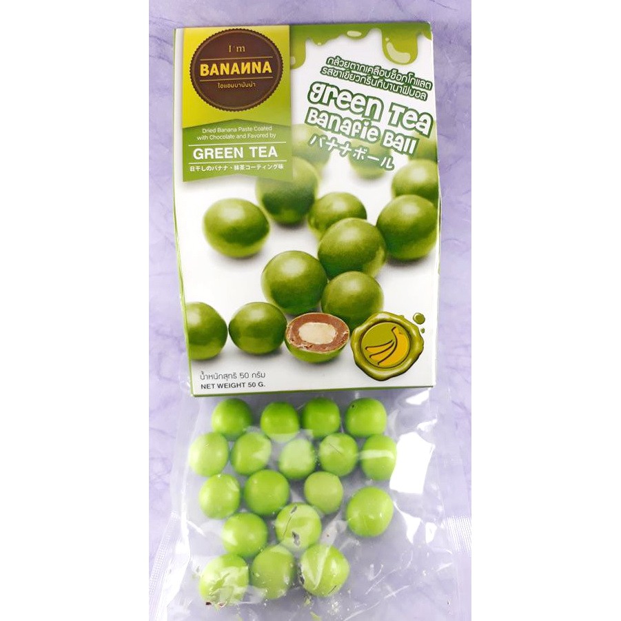 Banana Choco Ball Green Tea I am Banana กล้วยอบช็อคโกบอล รสชาเขียว บานาน่าฟีบอล 1 กล่อง 50g. สามารถสั่งซื้อออนไลน์ จัดส่งสินค้ารวดเร็วทันใจ ได้รับสินค้าแน่นอน สามารถเก็บเงินปลายทางได้ ปลอดภัย มั่นใจได้สินค้า 100%