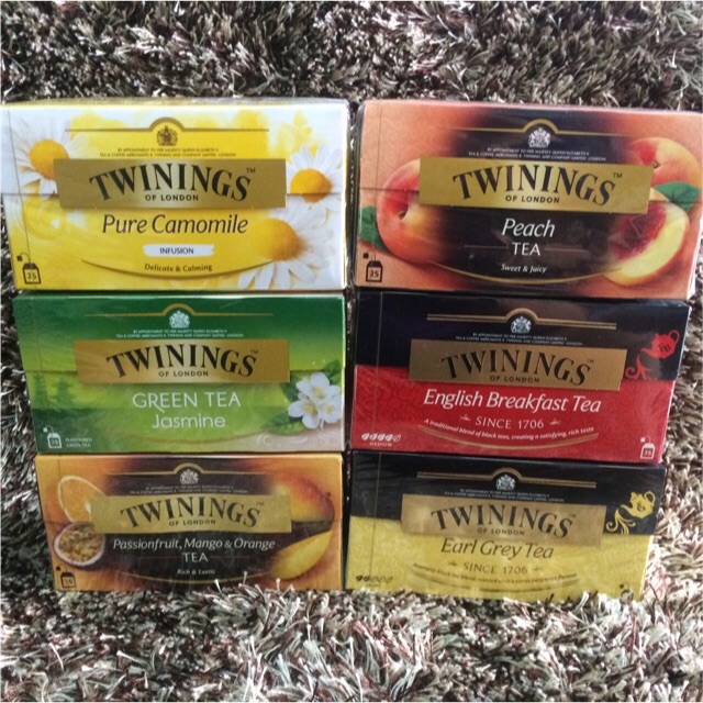 ชาTwinings 1กล่องบรรจุ25ซอง ของเข้าแล้วมีทุกรสชาติค่ะ 1.Vanilla 2.Earl Grey 3.Englis Breakfast 4.Finest Ceylon 5.Wild Berry 6.Four Red Fruits 7.Lemon 8.Darjeeling 9.Lady Grey 10.Peach 11.Peach&Passionfruit 12.Passionfruit,Mango&Orange 13.Strawberry&mango 14.Pure Camomile 15.Pure Pepper mint 16.Pure Greentea 17.Greentea Jasmine twinings twining tea ชา teatwining