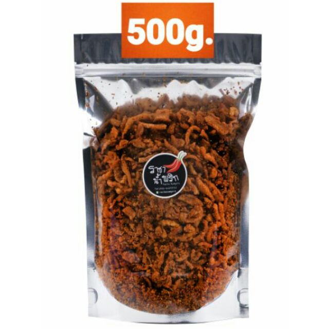 น้ำพริกหมูกระจก/กากหมู/ไก่กรอบ/น้ำย้อยหมู/กุ้งแก้ว/หมูหยอง/ปลาป่น500g. ราคาถูกสุด